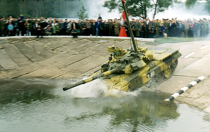 The T-90 is a third-generation Russian battle-tank that entered service in 1993. The tank is a modern variation of the T-72B and incorporates many features found on the T-80U. Originally called the T-72BU, but later renamed to T-90, it is an advanced tank in service with Russian Ground Forces and the Naval infantry. The T-90 uses a 125 mm 2A46 smoothbore main gun, the 1A45T fire-control system, an upgraded engine, and gunner’s thermal sight. Standard protective measures include a blend of steel and composite armour, smoke grenade dischargers, Kontakt-5 explosive-reactive armour and the Shtora infrared ATGM jamming system. It was designed and built by Uralvagonzavod, in Nizhny Tagi, in Sverdlosk Oblast, Russia, located 25 kilometers east of the virtual border between Europe and Asia.