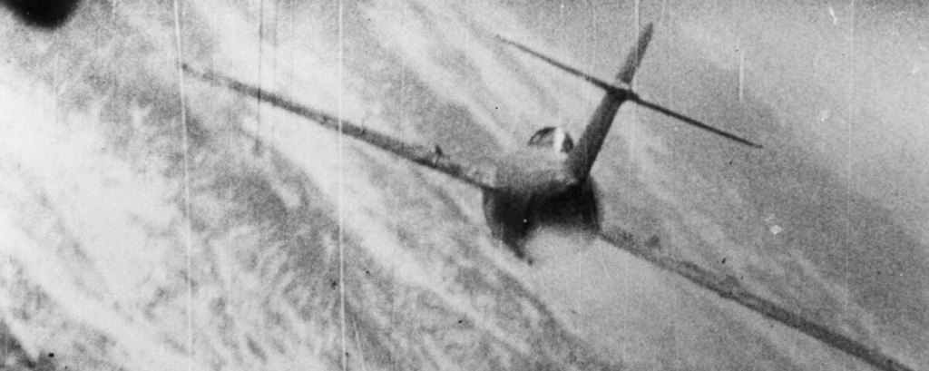 On November 26, 1943, the 56th FG was assigned to cover the withdrawal of Boeing B-17 Flying Fortress bombers that had bombed Bremen, Germany. The P-47s arrived to find the bombers under heavy attack near Oldenburg and immediately dived into the fray. Gabreski recorded his fourth and fifth kills to become an “Ace”. He was leading a bomber escort flight when they were attacked by a group of Me-110s. Gabby was making a stern attack on one of them when it suddenly exploded. Large pieces of the Messerschmitt skimmed off his canopy and smashed into the P-47’s right wing. His plane was still flyable, though, so he climbed back up to continue the fight and downed a second 110. The 56th set a record that day with 23 confirmed victories, and Gabby was awarded the Distinguished Service Cross for his leadership. This was his 75th mission. He had a close brush with death on December 11, when a 20 mm cannon shell lodged in his engine without exploding, destroying its turbocharger. Low on fuel and ammunition, Gabreski outmaneuvered a Bf-109 until it succeeded in placing a burst of fire into his P-47, disabling the engine. Gabreski stayed in the airplane, however, until it restarted at a lower altitude, where the turbocharger was not needed.