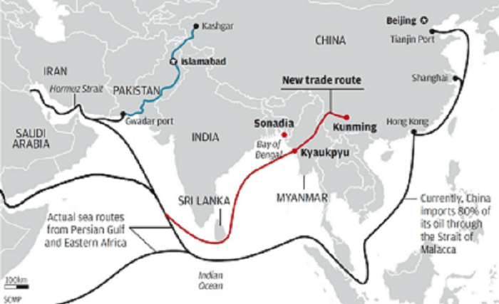 The Chinese government has taken a number of steps to reduce the country’s over-reliance on the Straits of Malacca. These include the Kazakhstan-China Pipeline, which brings in oil from the oil rich Caspian sea region, and the Myanmar-Yunnan Pipelines which siphons oil and gas from the Bay of Bengal to Yunnan, avoiding the Malacca Strait for the Kazakhstan and Burmese oil imports respectively. However, the Kazakhstan-China and Myanmar-Yunnan pipelines only provide 400,000 and 420,000 barrels a day respectively, compared to the 6.5 million China-bound barrels that pass through the Malacca straits on a daily basis. The Kyaukpyu Port which is being developed by the Chinese government in Myanmar is another alternative for China to pump the oil coming in via the IOR, by utilising the Myanmar – Yunnan pipelines. In the short to medium term however, China will have to live with the Malacca dilemma and this is one area that needs India’s full attention in case of a conflict.