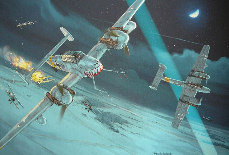 The Bf 110 served with considerable success in the early campaigns in Poland, Norway and France. The primary weakness of the Bf 110 was its lack of maneuverability, although this could be mitigated with better tactics. This weakness was exploited when flying as close escort to German bombers during the Battle of Britain. When British bombers began targeting German territory with nightly raids, some Bf 110-equipped units were converted to night fighters, a role to which the aircraft was well suited. After the Battle of Britain the Bf 110 enjoyed a successful period as an air superiority fighter and strike aircraft in other theatres and defended Germany from strategic air attack by day against the USAAF’s 8th Air Force, until an American change in fighter tactics rendered them increasingly vulnerable to developing American air supremacy over the Reich as 1944 began.