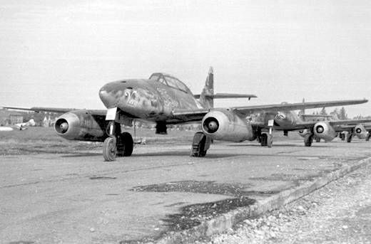 The Allies, aware of the Me 262’s disruptive potential, devoted considerable resources to contain it. Allied fighters were at a severe disadvantage in taking on the jets at high altitude, as they were significantly faster than any piston driven plane. However, the Me 262s were vulnerable at takeoff and landing, and parked on their airfields they were sitting ducks. So Allied fighters patrolled the vicinity of Me 262 airfields to try and catch them taking off or landing, and bombed them with mounting frequency. Shooting them down might have been difficult, but destroying them on the ground and wrecking the infrastructure needed to send them up in the first place was well within Allied capabilities.