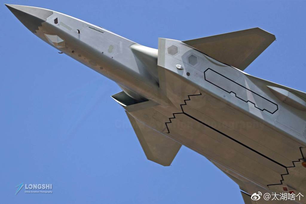 The main weapon bay is capable of housing both short and long-range air-to-air missiles (AAM) (PL-9, PL-12C/D &PL-15 – PL-21) while the two smaller lateral weapon bays behind the air inlets are intended for short-range AAMs (PL-10). These side bays allow closure of the bay doors prior to firing the missile, thus allowing the missile to be fired in the shortest time possible as well as enhancing stealth. The J-20 is reported to lack an internal autocannon or rotary cannon, suggesting the aircraft is not intended to be used in short range dogfight engagements with other aircraft but engage them with from long standoff ranges with missiles such as the PL-15 and PL-21.