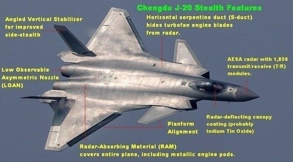 The J-20 is dubious for being the only so-called fifth-generation fighter jet to have canard and not a gun! That should make them an easy prey once their missiles are over. https://www.businessinsider.in/defense/chinas-j-20-stealth-fighter-has-no-cannon-and-it-shows-the-jet-cant-dogfight-with-the-us/articleshow/67649437.cms