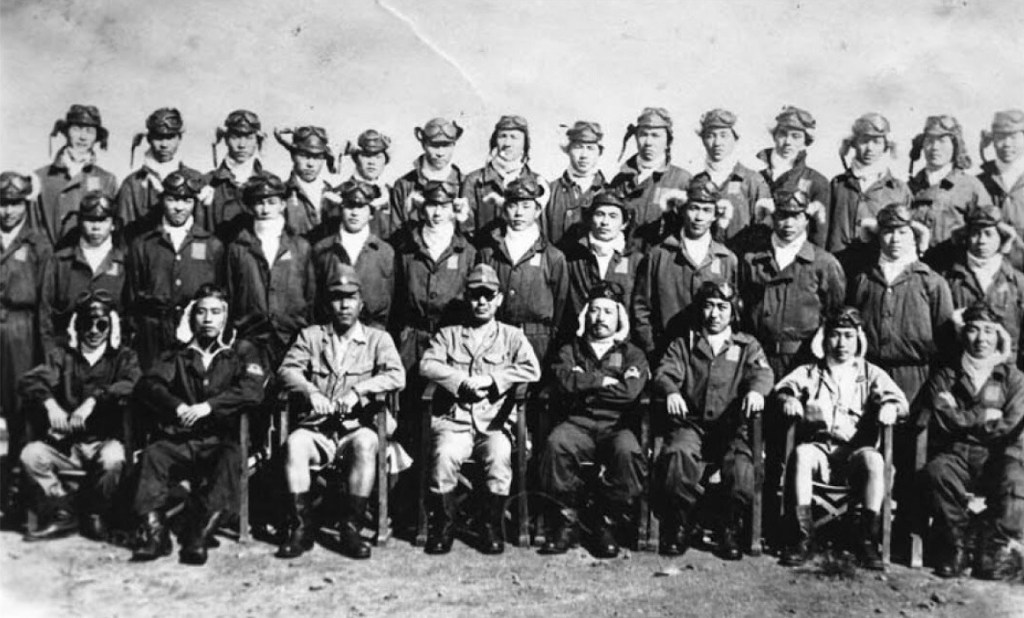 Flight leader Masao Sato with his pilots aboard Zuikaku, 6 Dec 1941, one day before Pearl Harbour Attack; Tetsuzo Iwamoto second row, right-most. Image Source: ww2db.com