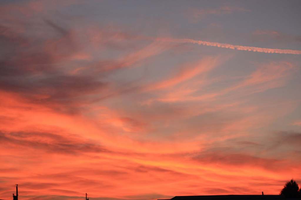 Beautiful morning sky, streaks of white, the evening red, like the funeral pyre