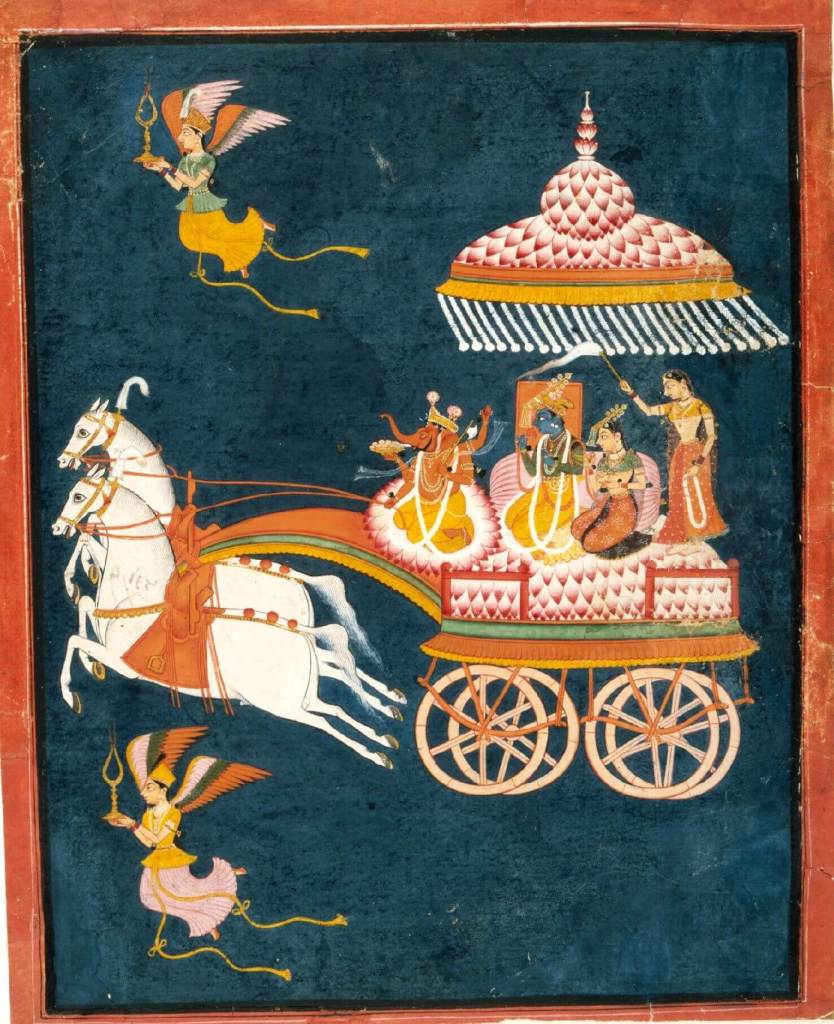 The Sanskrit word ‘Vimana’ (meaning a part that has been measured and set aside) first appeared in Vedas with several meanings ranging from temple or palace to mythological flying machine. References to these flying machines were common in ancient Indian texts, even describing their use in warfare, and being able to fly within Earth’s atmosphere. Vimanas were also said to be able to travel into space and under water. The Sun and Indra and several other Vedic deities were transported by flying wheeled chariots pulled by animals, usually horses, but others like the “agnihotra-vimana” (Agni means fire) with two engines and the “gaja-vimana” (elephant powered) were known. Rigveda also talks of “mechanical birds”. Later texts around 500 BC talk of self-moving aerial car without animals. In some modern Indian languages, the word vimana means aircraft.