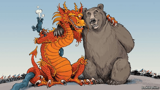 A large expanse of Russian land-mass lies in Asia. The Russia national emblem has an eagle with two heads facing in opposite directions. The saying among Russian people say that one head is looking towards Europe and the other towards Asia. But traditionally the Russian people and rulers have preferred to be known as a European nation. The power and prestige loss after the dissolution of Soviet Union had demoralized the Russian people. In the soviet times they were enamored with anything Western. They now hoped that they will now become like a Western country. China realised this insecurity and stepped in with treaties of friendship and increased economic and defence relationship. On the other hand, the Americans snubbed Russia and tried to move closer to Russian borders by taking more erstwhile Warsaw pact countries into NATO and EU fold. This pushed Russia, to its own detriment, into the Chinese arms.