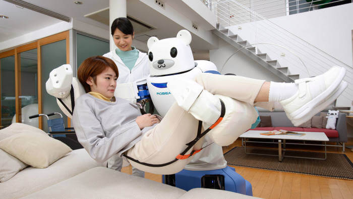 A domestic robot provides autonomous service for household chores, but may also be used for education, entertainment or therapy. These already exist but could become more common in the future. There were an estimated 16.3 million service robots in 2018. Robots are able to reliably read lips and recognize face, mouth and hand gestures. Robots understand speech context well enough to interact with humans as receptionists, retail store assistants and clerks. Indoor robots sweeping and wet mopping functions. There are ironing robots. More advanced ones fold and organizes the clothes (using image analysis and artificial intelligence). There are animal litter cleaning robots. Robotic in kitchens makes rotis and puris out of flour in just a few minutes. Security robots have a night-vision-capable wide-angle camera that detects movements and intruders, and shoot video, and send alerts via email or text message. There are robot that open doors, and even climb stairs. Outdoor robots mow lawns, scrub and clean swimming pools, clean gutters, and clean outer windows, among others. Social robots take on the function of social communication. Domestic humanoid robots are used by elderly and immobilized residents to keep them company. Home-telepresence robots can move around in a remote location and let one communicate with people there via its camera, speaker, and microphone. Robots are also built for therapy and can be used for autism or physical therapy. By 2032 Robots may common in every workplace, eliminating all manual labor and repetitive interactions (e.g., receptionists, tour guides, drivers, pilots, construction workers). Robots would act as maids, butlers, nurses and nannies,and become full companions. They support extended elderly independence at home.