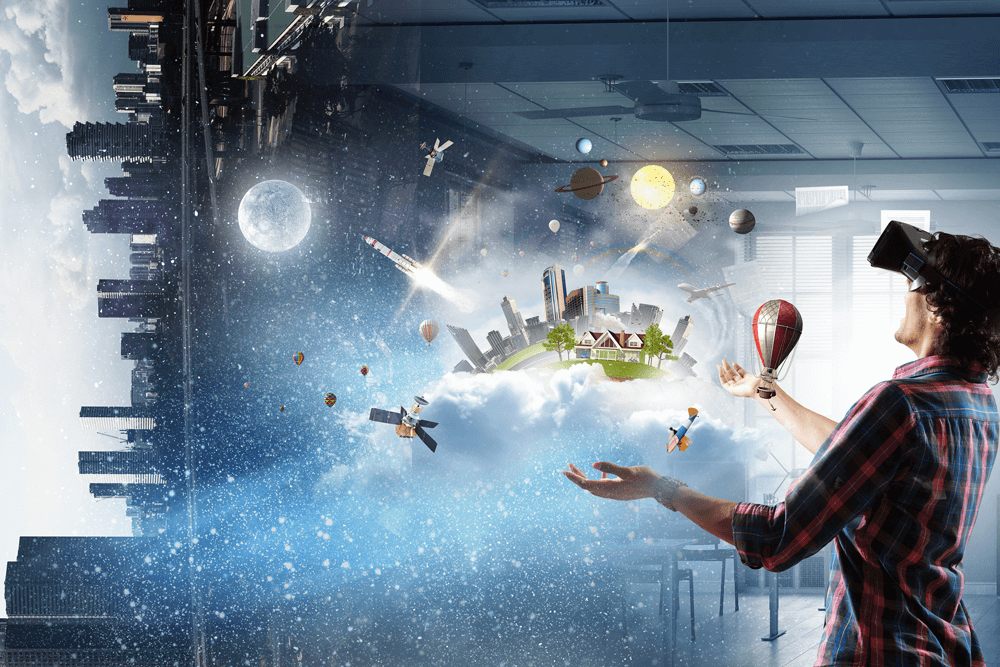 Virtual Reality (VR) is a simulated experience that can be similar to or completely different from the real world. Applications of virtual reality include entertainment (i.e. video games) and educational purposes (i.e. medical or military training). Other, distinct types of VR style technology include augmented reality and mixed reality, sometimes referred to as extended reality or XR. Currently standard virtual reality systems use either virtual reality headsets or multi-projected environments to generate realistic images, sounds and other sensations that simulate a user’s physical presence in a virtual environment. A person using virtual reality equipment is able to look around the artificial world, move around in it, and interact with virtual features or items. The effect is commonly created by VR headsets consisting of a head-mounted display with a small screen in front of the eyes, but can also be created through specially designed rooms with multiple large screens. Virtual reality typically incorporates auditory and video feedback, but may also allow other types of sensory and force feedback through haptic technology.