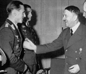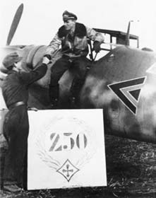 In August 1943 Rall claimed 33 aircraft shot down as JG 52 fought over Central Ukraine through the late summer. Rall claimed two Lavochkin-Gorbunov-Gudkov LaGG-3 fighters shot down on 29 August 1943 in the vicinity of Kuybyshev, present-day Samara, taking his total to 200 aerial victories. Following Hermann Graf and Hans Philipp, Rall was the third fighter pilot to reach the double century mark. This achievement earned him a named reference in the Wehrmachtbericht (Nazi propaganda communiqué) that day and on 12 September was also honored with the Knight’s Cross of the Iron Cross with Oak Leaves and Swords. He was the 34th member of the German armed forces to be so honored. The presentation was made by Hitler at the Wolf’s Lair, Hitler’s headquarters in Rastenburg on 22 September 1943. Three other Luftwaffe officers were presented with awards that day by Hitler, Major Hartmann Grasser and Hauptmann Heinrich Prinz zu Sayn-Wittgenstein were awarded the Oak Leaves, and Hauptmann Walter Nowotny also received the Swords to his Knight’s Cross with Oak Leaves. Following the award ceremony, Rall went on vacation until the end of September.