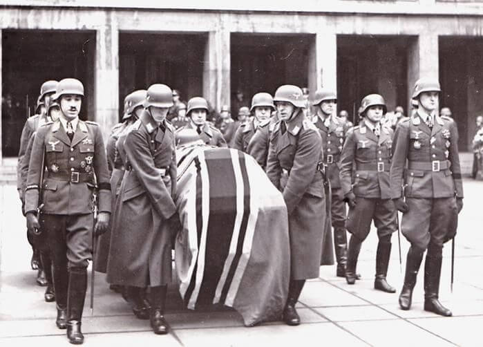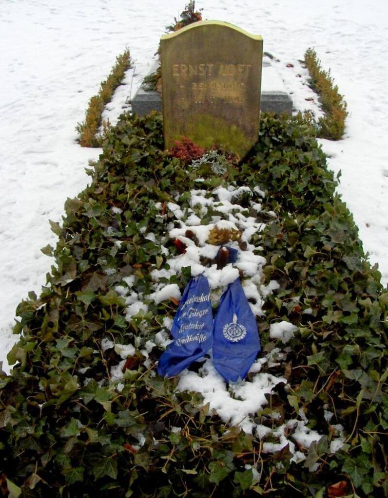 On 17 November 1941, at age 45, Ernst Udet committed suicide in Berlin, by shooting himself in the head while on the phone with his girlfriend, Inge Bleyle. Udet’s suicide was concealed from the public, and at his funeral he was lauded as a hero who had died in flight while testing a new weapon. The circumstances of Udet’s death were kept secret, and he was given a state funeral attended by Adolf Hitler, Goering and other top officials. On their way to attend Udet’s funeral, the World War II fighter ace Werner Mölders died in a plane crash in Breslau, and high Luftwaffe executive General der Flieger (General of Aviators) Helmuth Wilberg died in another plane crash near Dresden. Udet was buried next to Manfred von Richthofen in the Invalidenfriedhof Cemetery in Berlin. Mölders was buried next to Udet.