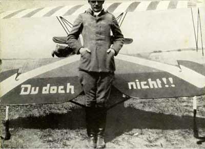 While at home, Udet had reacquainted himself with his childhood sweetheart, Eleanor “Lo” Zink. Notified that he had received the Pour le Mérite, he had one made up in advance so that he could impress her, and painted her name on the side of his Albatros fighters and Fokker D VII. Also on the tail of his Fokker D VII was the message “Du doch nicht” – “Definitely not you” – a taunt and challenge to Allied pilots.