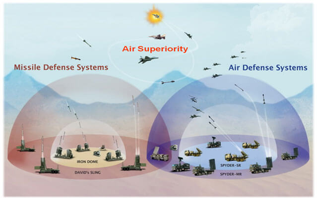 Air defence of a vital asset or an area is normally built around a system of concentric layers. The outer layer will usually be handled by fighter aircraft with active electronically scanned array (AESA) radars and combinations of AD missiles supported by AEW&C. If an attacker is able to penetrate this layer, then the next layer is covered by surface-to-air missiles, some with ranges in excess of 150 kilometres. The S-400 Triumf class which has a family of missiles covering different height and range bands could neutralise targets as far as 400 km. Other shorter-range missiles would have ranges around 30-50 kilometres. Finally, there will be the close-in-weapon-system (CIWS), the very short Range AD system (VSHORADS) missiles, the man-portable missiles and the radar-controlled anti-aircraft guns firing several thousand rounds per minute.