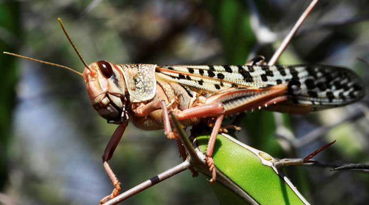 FILE PHOTO: A desert locust is seen feeding on a plantation in a grazing land on the outskirt of Dusamareb in Galmudug region, Somalia December 22, 2019. REUTERS/Feisal Omar/File Photo