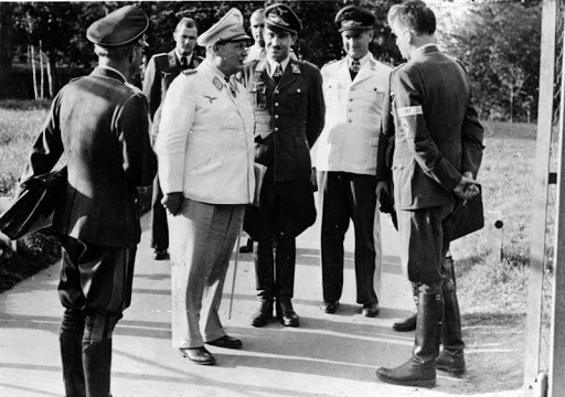 Der Reichsmarschall im Gespräch mit Generalmajor Galland, Generaloberst Loerzer und Reichsminister Speer.
